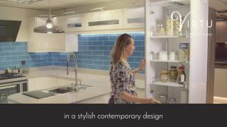 A convenient pull out larder, designed with 50 years of German engineering experience. In a stylish contemporary design. Clever storage for the modern kitchen.
