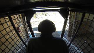 Driving the Bobcat 642B from the bucket\'s perspective. Loading manure/earth into a skip.
