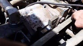 Attaching the bucket to a Bobcat 642B.
