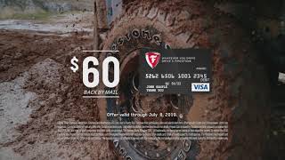 http://www.sstire.com/retail Get to S&S Tire, March 15th through April 2nd, get $60 by mail on a Firestone Visa prepaid card when you buy a set of 4 eligible ...